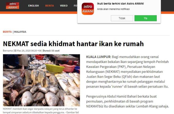 Promosi di portal-portal berita dan media masa oleh pihak NEKMAT dan LKIM bagi memperkenalkan kepada pengguna laman sesawang jualan ikan secara atas talian NEKMATBIZ